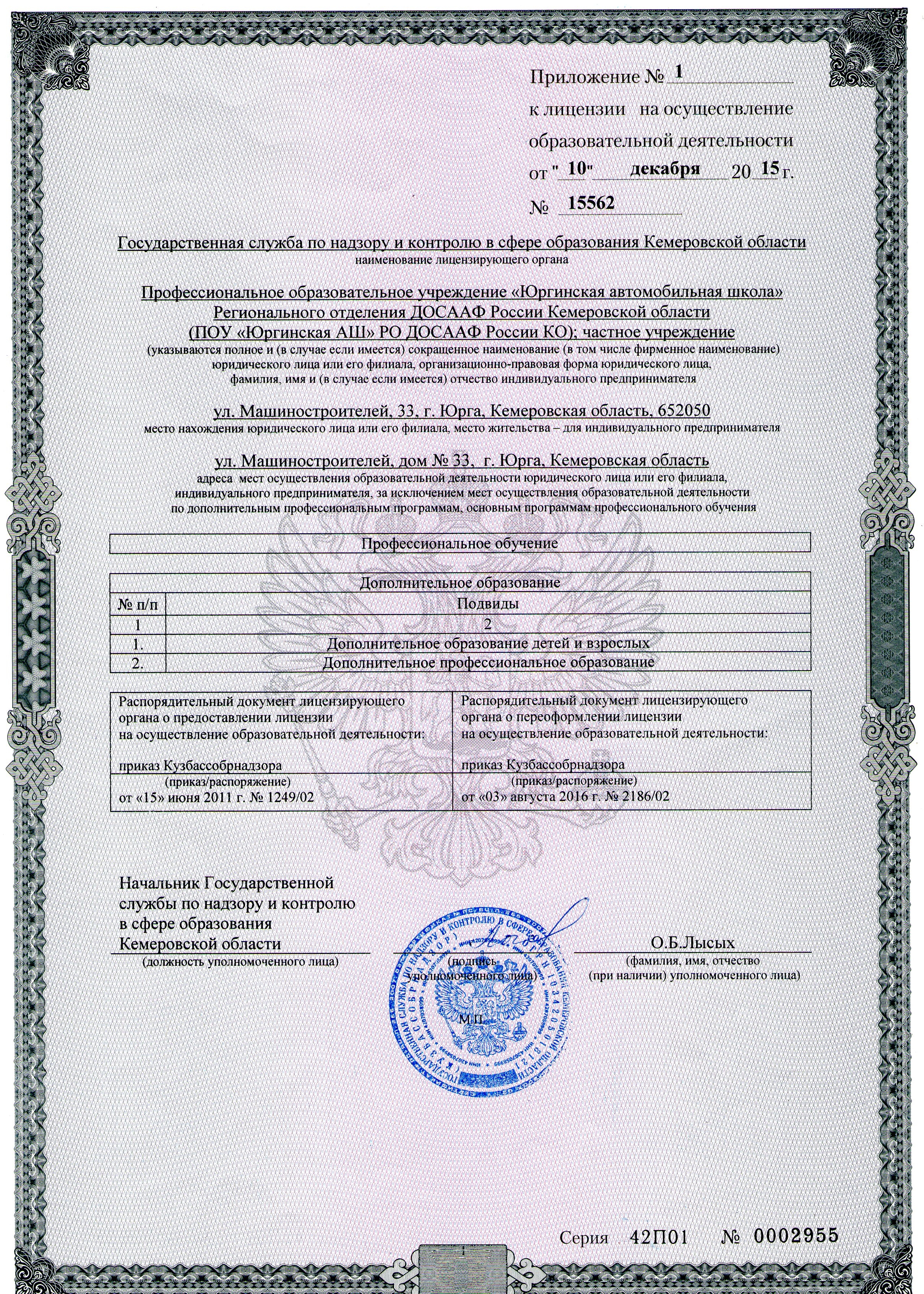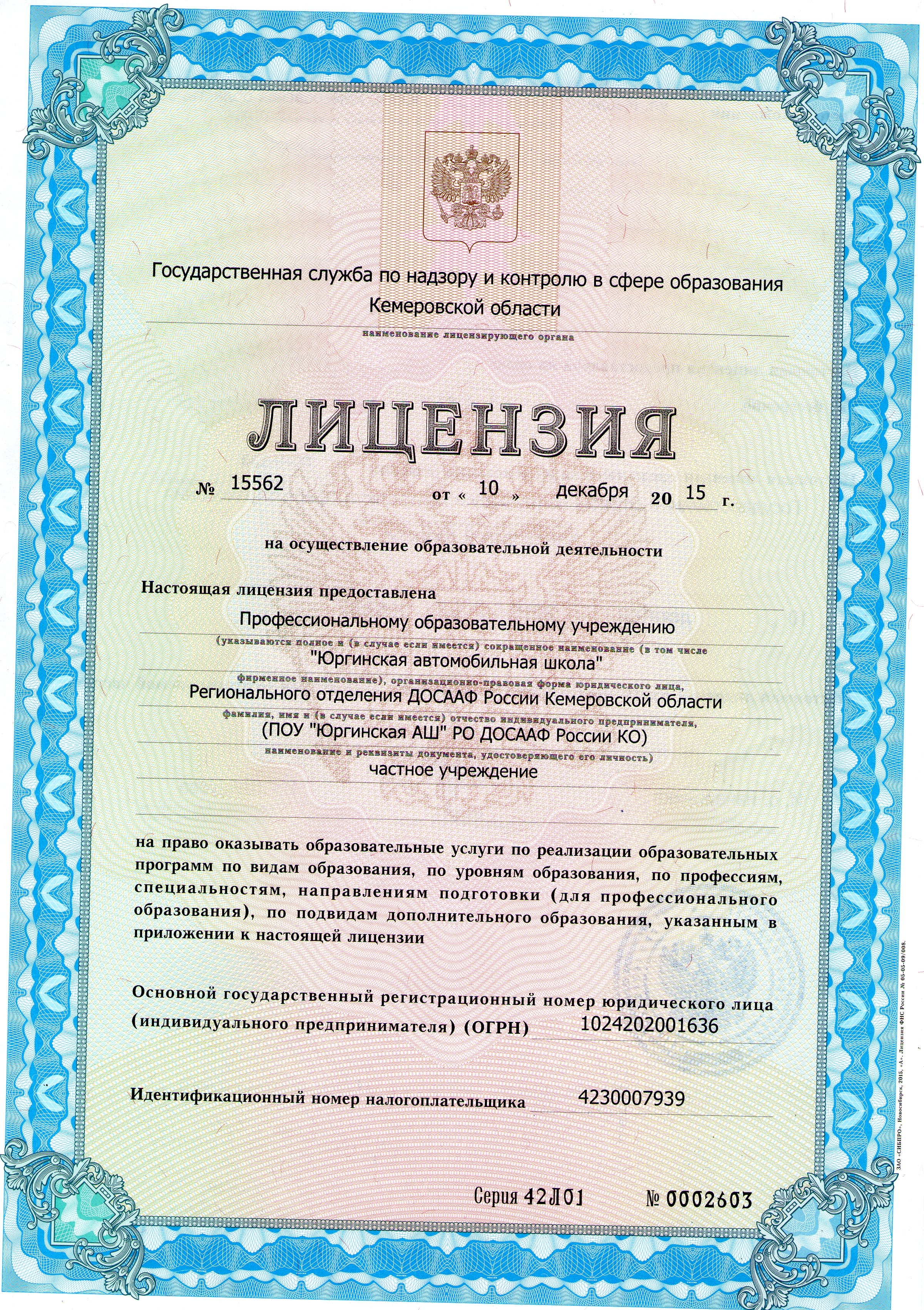 Скачать полностью лицензию Устав ПОУ «Юргинская АШ» РО ДОСААФ России КО