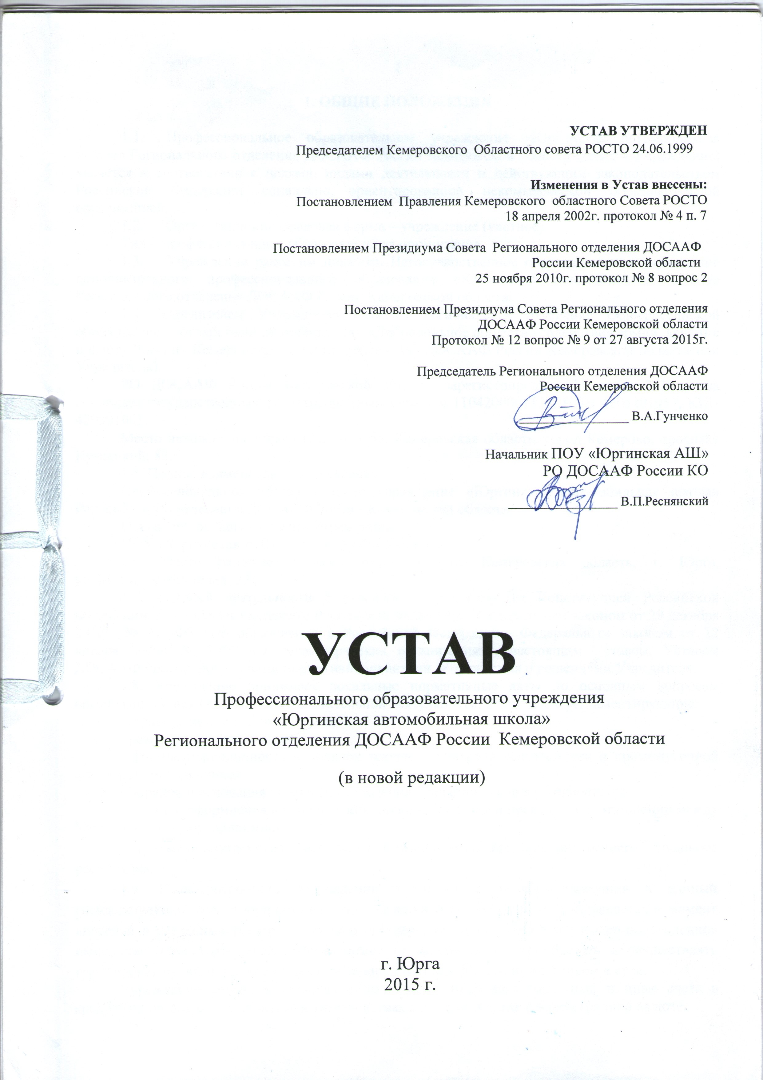 Скачать полностью Устав ПОУ «Юргинская АШ» РО ДОСААФ России КО